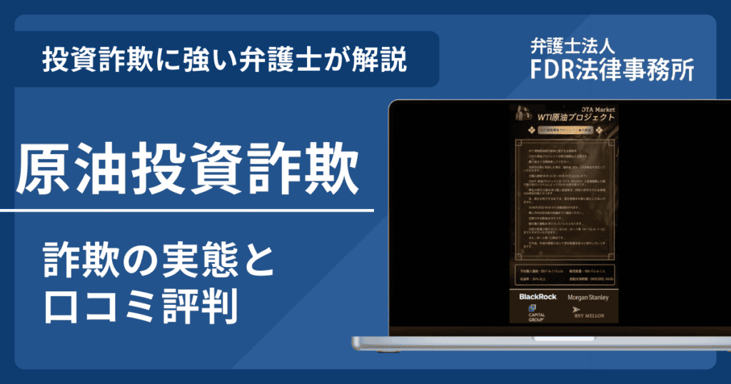 近年、「原油価格の高騰」や「エネルギー市場の拡大」といったニュースを背景に、原油取引の詐欺をうたう詐欺が急増しています。SNSやLINEを通じて「必ず儲かる」「月利... 弁護士法人FDR法律事務所